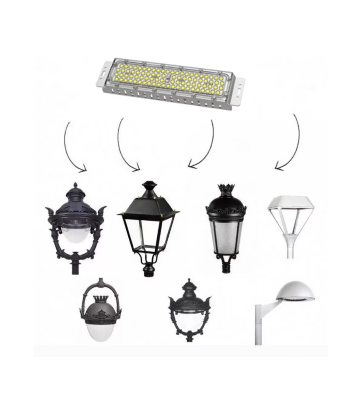 50W LED optical module with 60º beam, designed for installation in streetlights or public lighting fixtures, offering high energy efficiency and excellent heat dissipation.
