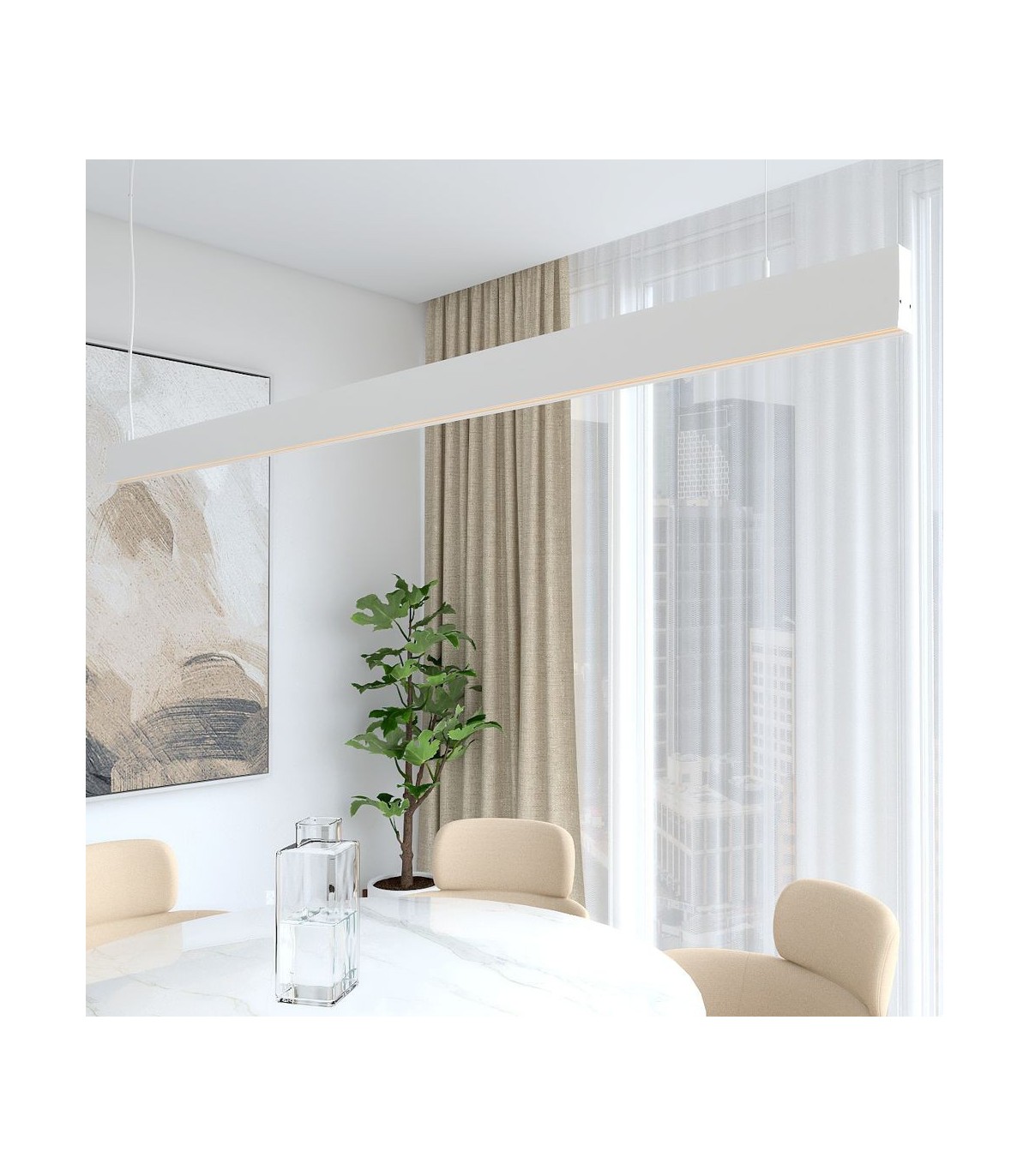 The DESIGN LOLA Linear LED Pendant Light is a professional lighting solution, made in Spain, designed to deliver efficient, high-quality lighting in demanding environments. Featuring a white matte lacquered aluminium profile and a modern design, it is ideal for spaces that require elegant and functional lighting.