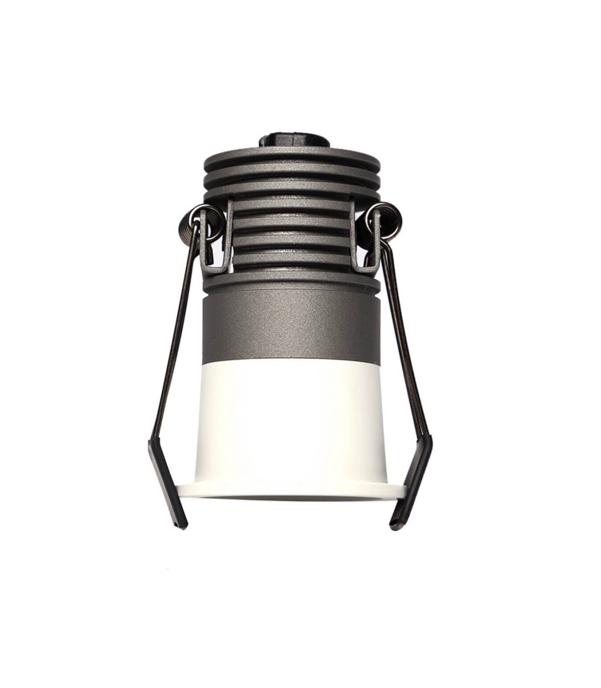 Foco LED empotrable mini de 5W con temperatura de color CCT seleccionable (3000K/4000K/6000K), dimensiones Ø40x55mm, corte en techo Ø35mm. Ángulo luminoso de 24º, fabricado en aluminio, acabado en blanco mate, chip LED BridgeLUX COB 2630 DS-C30, 580 lúmenes, driver LIFUD sin flicker, CRI>95, UGR<11.
