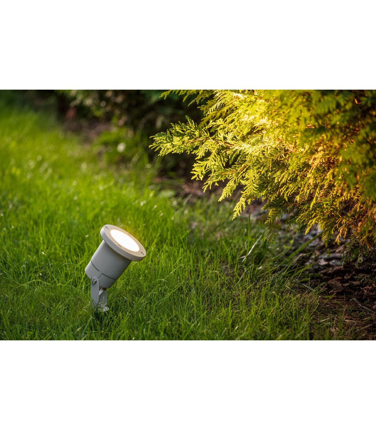 El foco de jardín DIEGO GU10 en color gris es una solución elegante y funcional para iluminar espacios exteriores. Con clasificación IP65, es resistente al agua y al polvo, lo que lo hace perfecto para su uso en cualquier entorno exterior. Su diseño compacto incluye un pincho de aluminio que permite clavarlo en la tierra, pero también se puede instalar en suelo firme o pared desmontando el pincho fácilmente quitando el tornillo de la base.