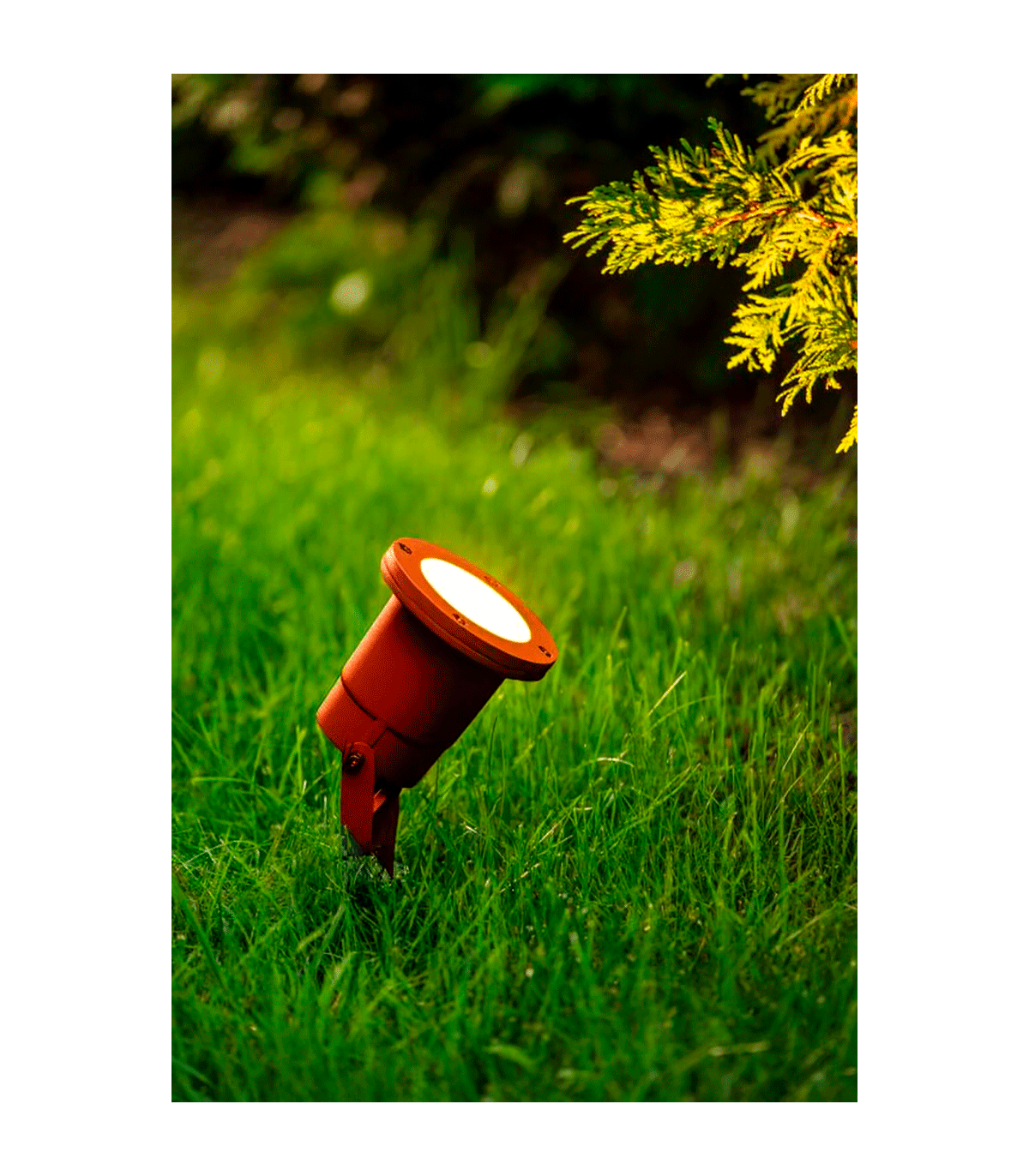 El foco de jardín DIEGO GU10 en color óxido símil acero corten es una solución elegante y funcional para iluminar espacios exteriores. Con clasificación IP65, es resistente al agua y al polvo, lo que lo hace perfecto para su uso en cualquier entorno exterior. Su diseño compacto incluye un pincho de aluminio que permite clavarlo en la tierra, pero también se puede instalar en suelo firme o pared desmontando el pincho fácilmente quitando el tornillo de la base.