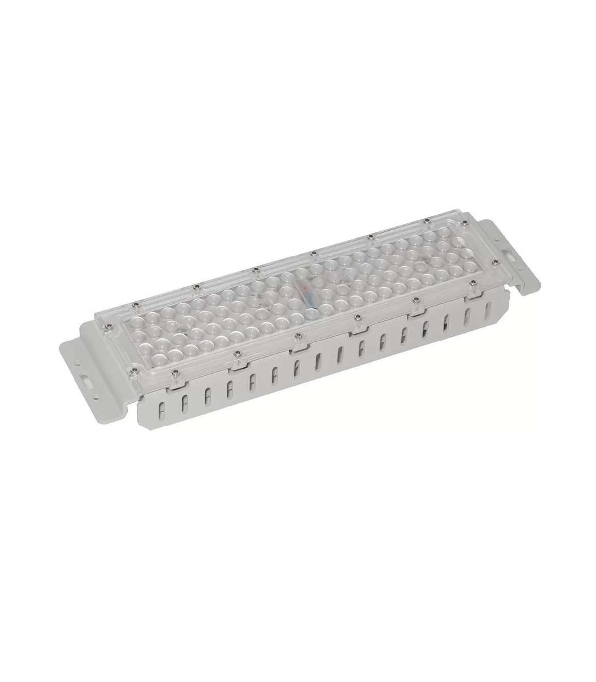 Módulo óptico LED de 50W con óptica luminosa de 60º, diseñado para instalación en farolas viales o luminarias de alumbrado público, ofreciendo una elevada eficiencia energética y una excelente disipación térmica.