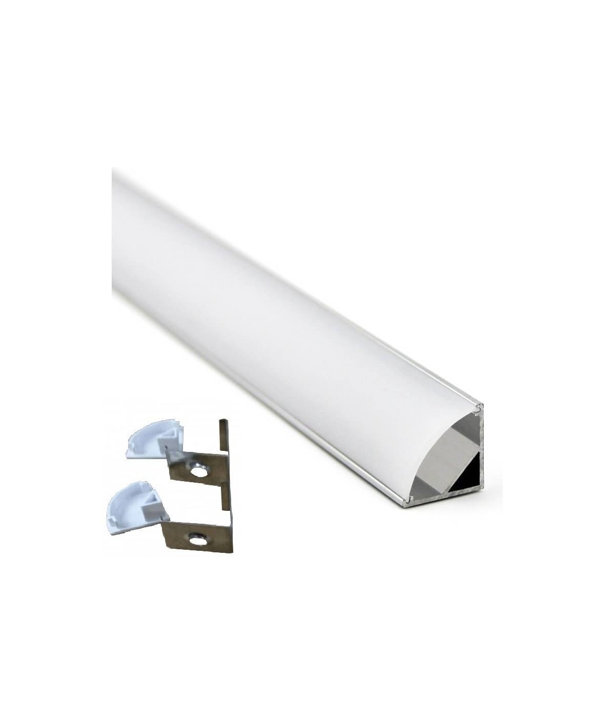 Este perfil de aluminio está diseñado para proporcionar una solución elegante y eficiente para la instalación de tiras LED. Con unas dimensiones de 16x16mm y una longitud de 2000mm, es perfecto para una variedad de aplicaciones, incluyendo el montaje en rincones y bajo muebles, donde emite luz en diagonal a 45º.