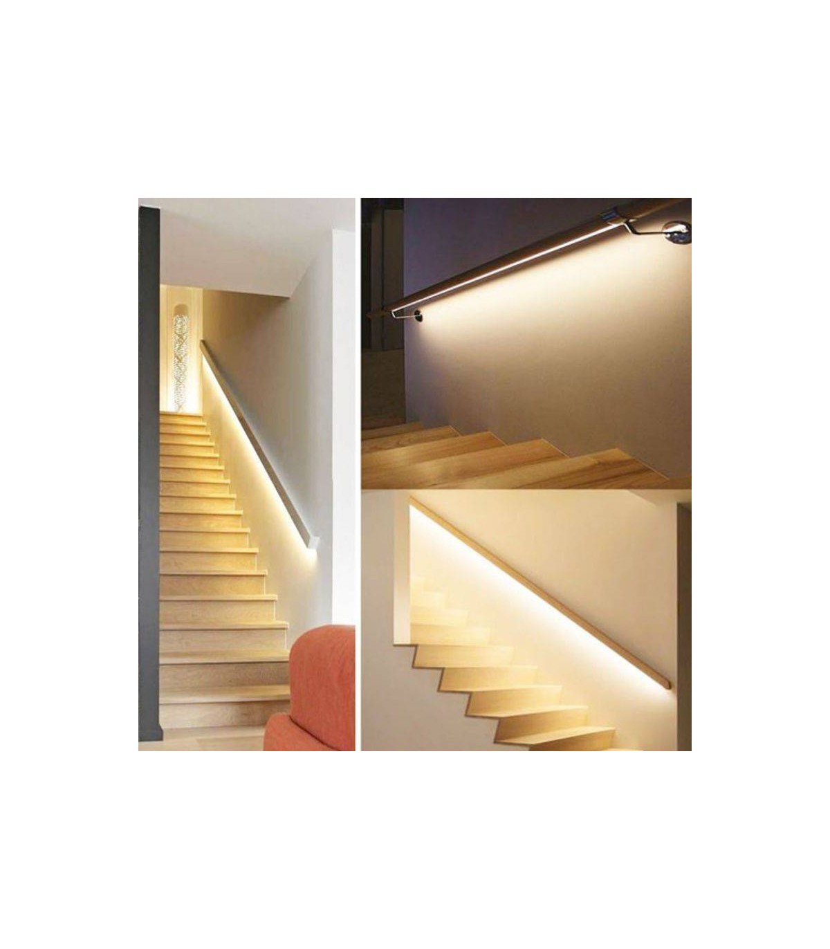 Requiere un corte de 17mm de ancho y es compatible con tiras LED IP20 de hasta 12mm. El kit completo de 2 metros incluye todos los accesorios necesarios para una instalación sencilla.