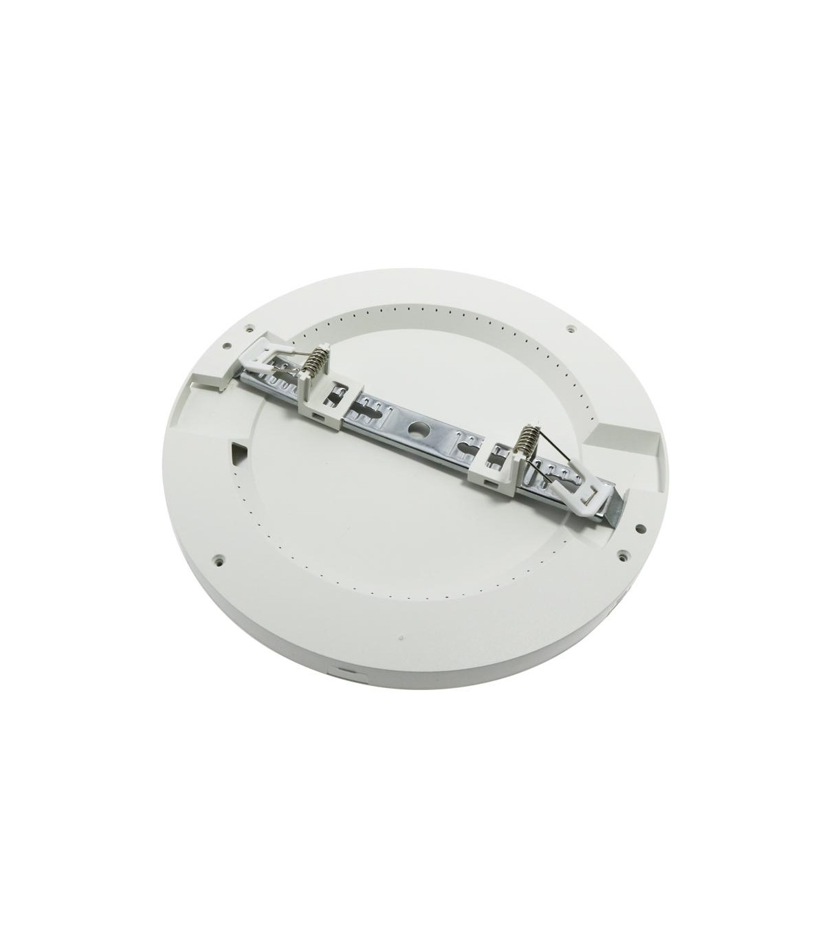 El montaje se puede realizar tanto empotrado con corte ajustable Ø65-205mm, o bien en superficie, anulando las patas de agarre y atornillando el soporte contra el techo. La configuración del plafón LED se realiza desde la parte frontal, desarmando el anillo embellecedor.