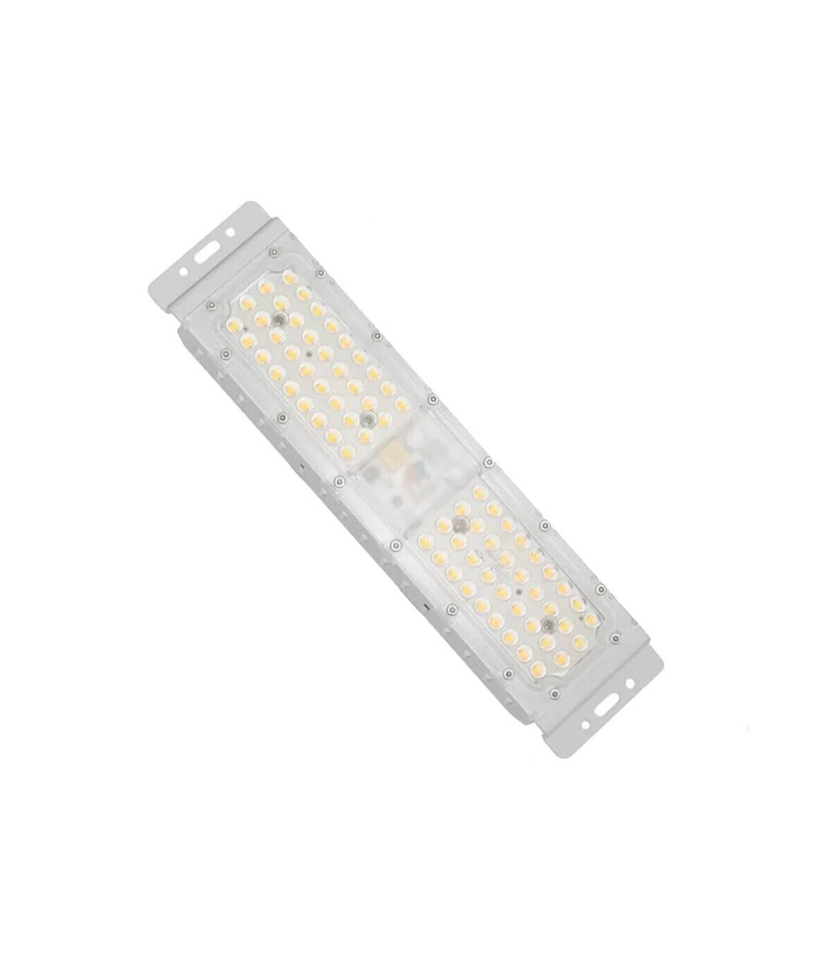 Module optique LED de 50W avec technologie DOB (Driver on Board) et optique de 60º, conçu pour une utilisation dans des lampadaires, projecteurs ou luminaires encastrés, offrant une performance lumineuse exceptionnelle avec une efficacité et une durabilité maximales.