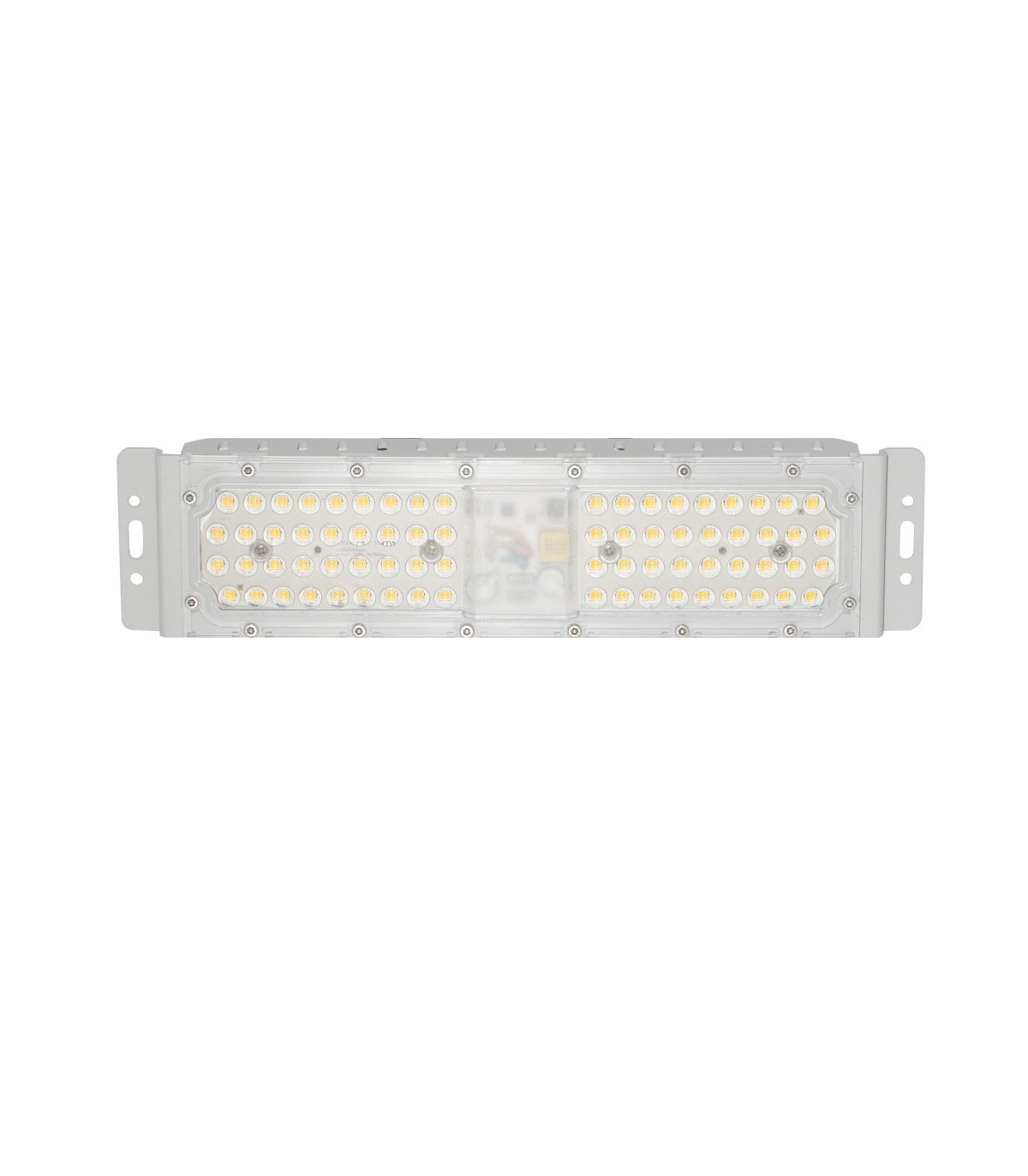 Module optique LED de 50W avec technologie DOB (Driver on Board) et optique de 90º, conçu pour une utilisation dans des lampadaires, projecteurs ou luminaires encastrés, offrant une performance lumineuse exceptionnelle avec une efficacité et une durabilité maximales.