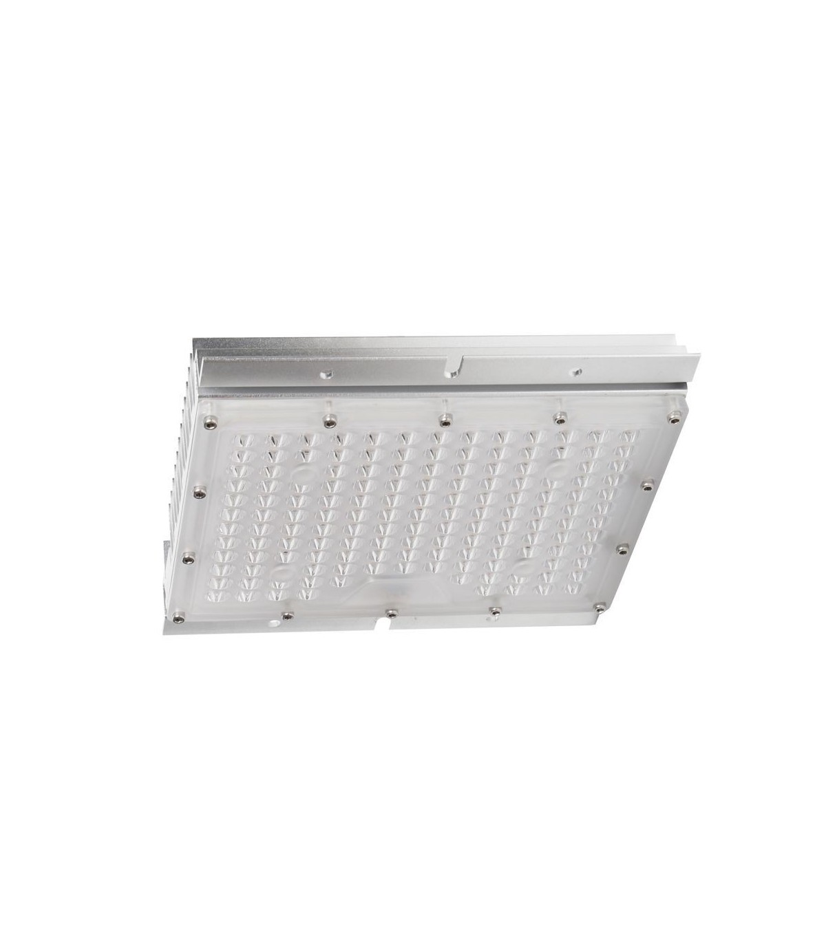 Module optique LED haute luminosité de 65W, conçu pour une installation dans des lampadaires de type Villa ou similaires, offrant un flux lumineux de 11 700 lumens et des performances optiques de grande qualité.