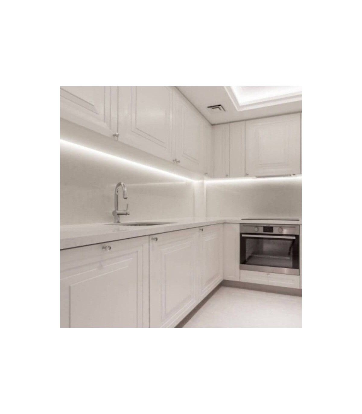 Fabriqué en aluminium de haute qualité et couleur blanc, le profilé est robuste et durable. Le diffuseur opale courbé de 2 mètres inclus dans le kit assure une distribution uniforme de la lumière, réduisant l'éblouissement et protégeant la ruban LED.