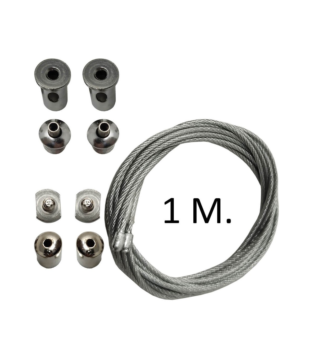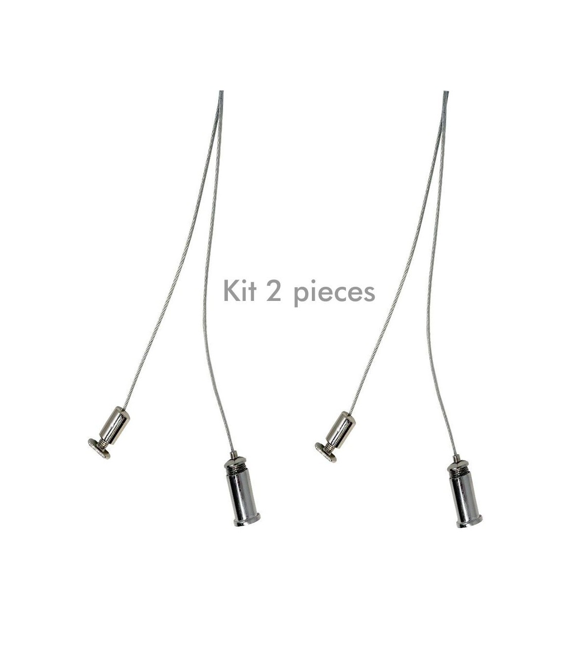 Kit de suspension pour accrocher des rails monophasés, composé de 2 unités de câbles en acier et de tous les accessoires nécessaires au montage.