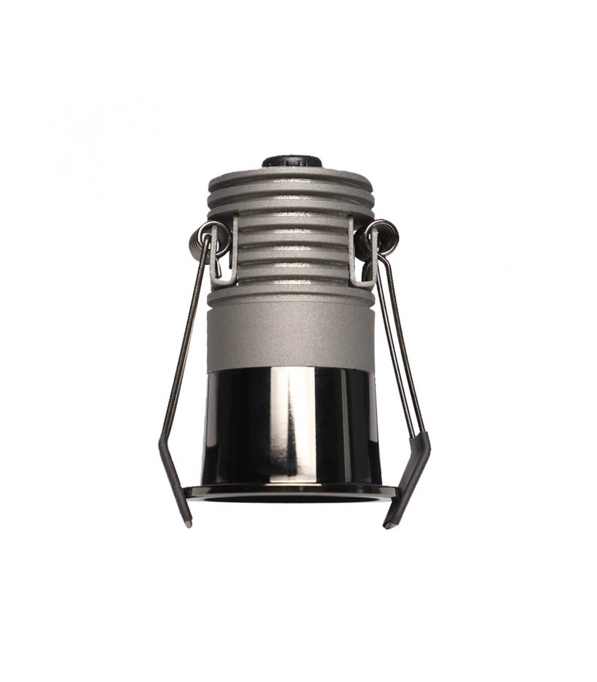Spot LED encastrable mini de 5W avec température de couleur CCT sélectionnable (3000K/4000K/6000K), dimensions Ø40x55mm, découpe au plafond Ø35mm. Angle lumineux de 24º, fabriqué en aluminium, finition en chrome noir brillant, puce LED BridgeLUX COB 2630 DS-C30, 580 lumens, driver LIFUD sans scintillement, CRI>95, UGR<11.