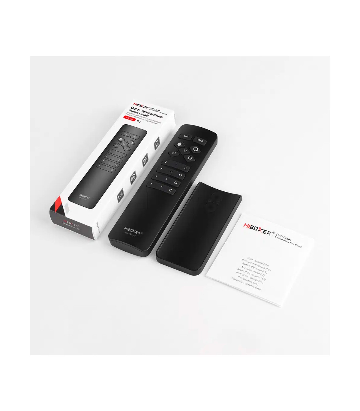 Il MiBoxer C1 è un telecomando ergonomico progettato per gestire la temperatura di colore e l'intensità luminosa delle tue strisce LED CCT in modo rapido e pratico. Il design minimalista e la ghiera touch permettono di regolare con precisione la tonalità del bianco, dal caldo al freddo.