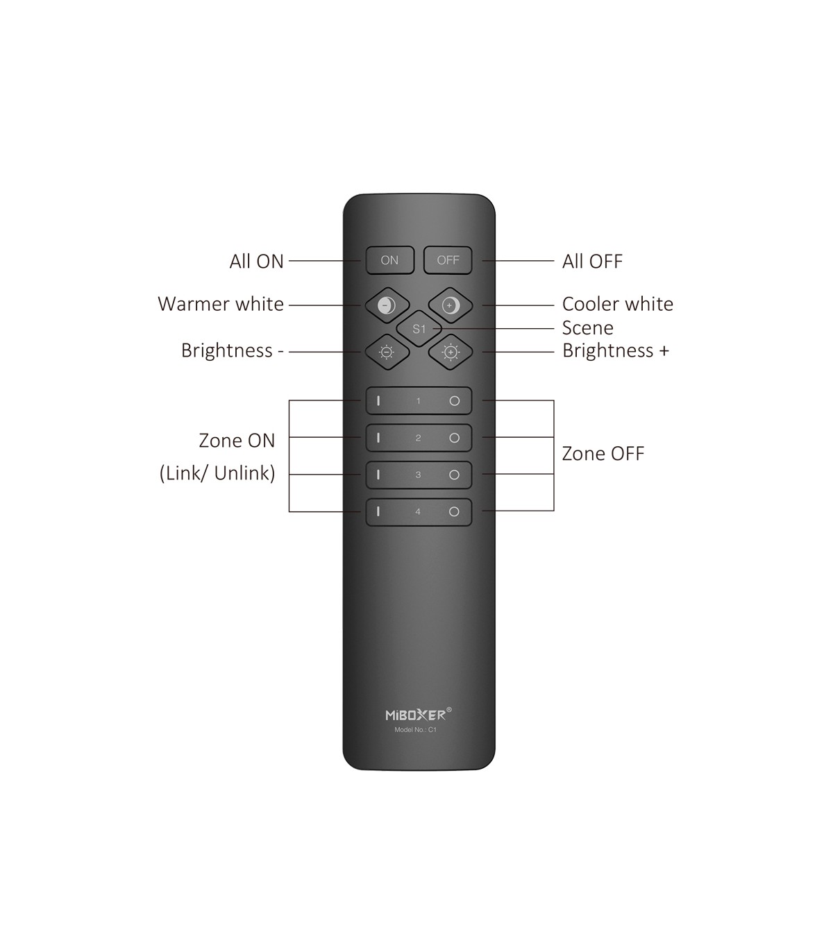 Telecomando MiBoxer C1 Strisce LED Dual CCT 4 zone 2.4GHz