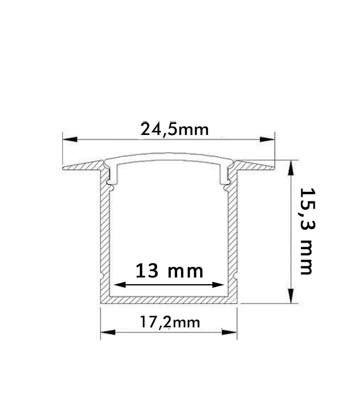 Profilo in Alluminio 24x15mm Laccato Nero diffusore Nero da Incasso per Strisce LED