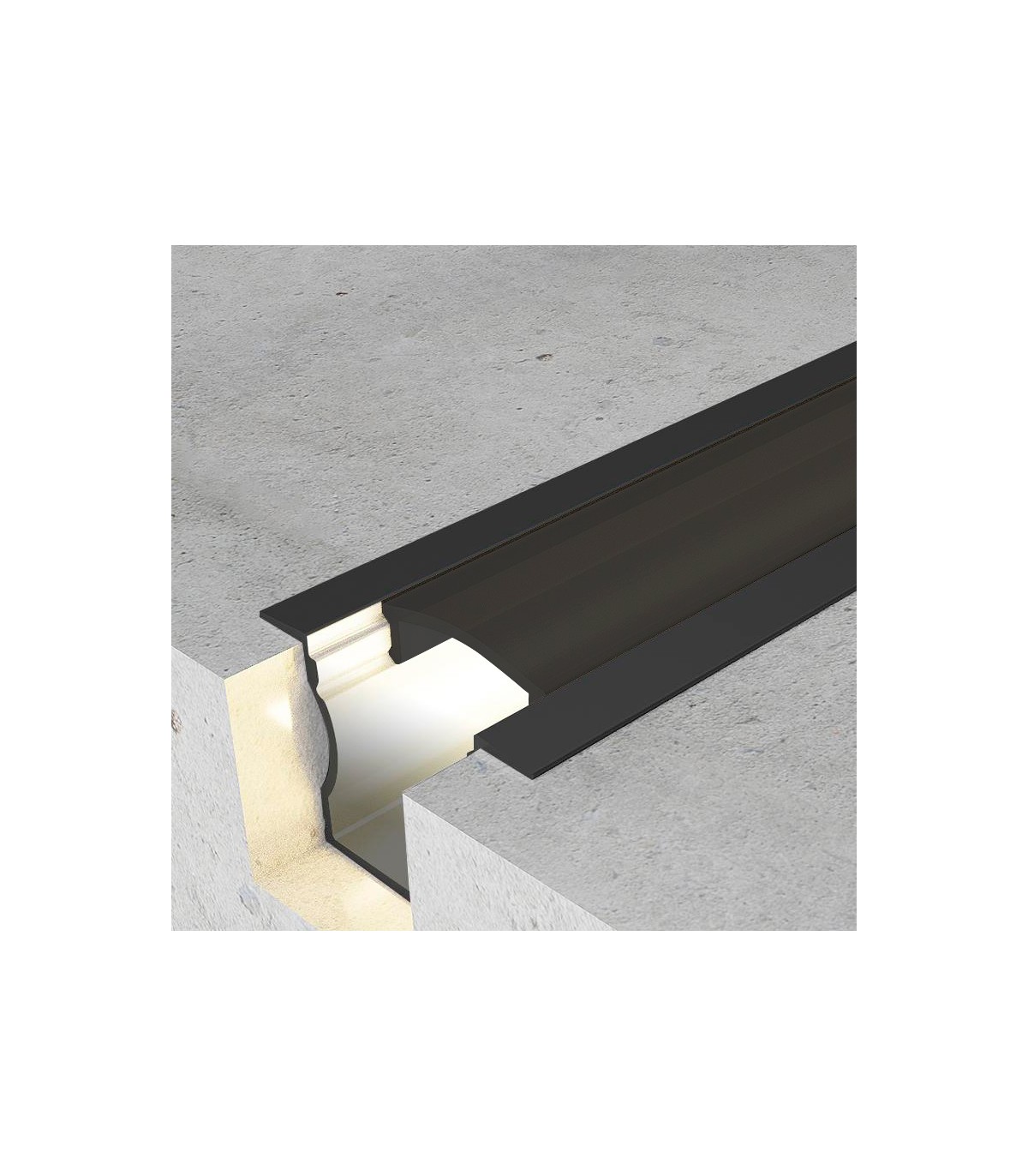 Con il suo design versatile e la finitura nera, questo profilo da incasso è la scelta perfetta per progetti di illuminazione che richiedono un tocco elegante e discreto.